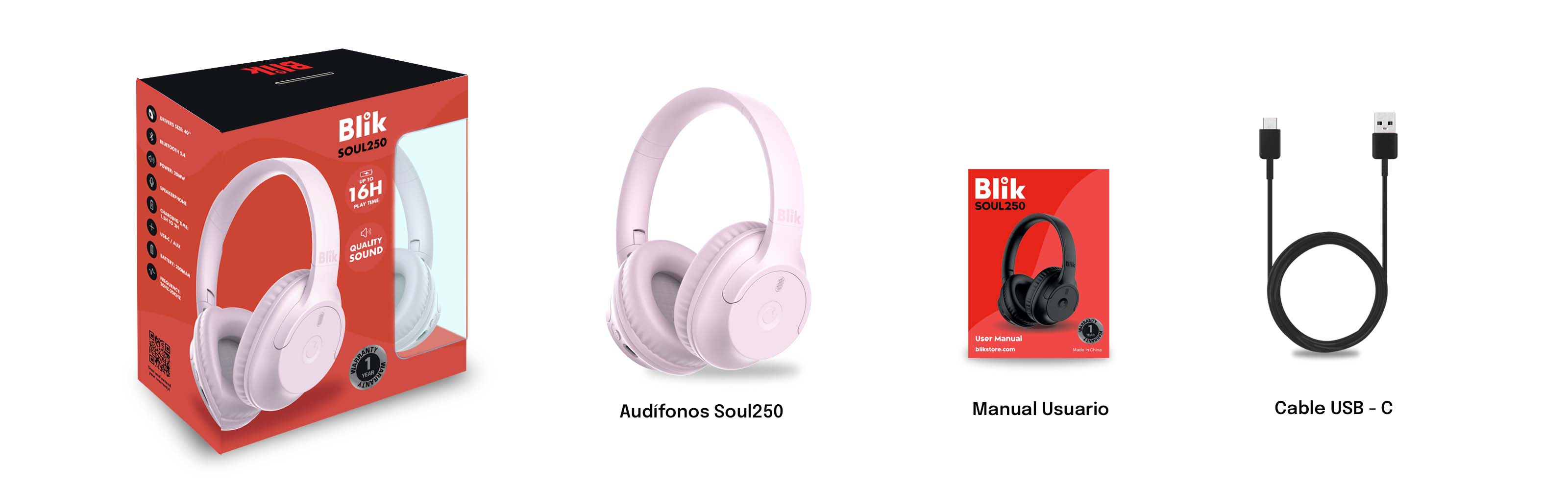 Audifonos Bluetooth Inalambricos Blik Soul250 Rosados 16 Hrs