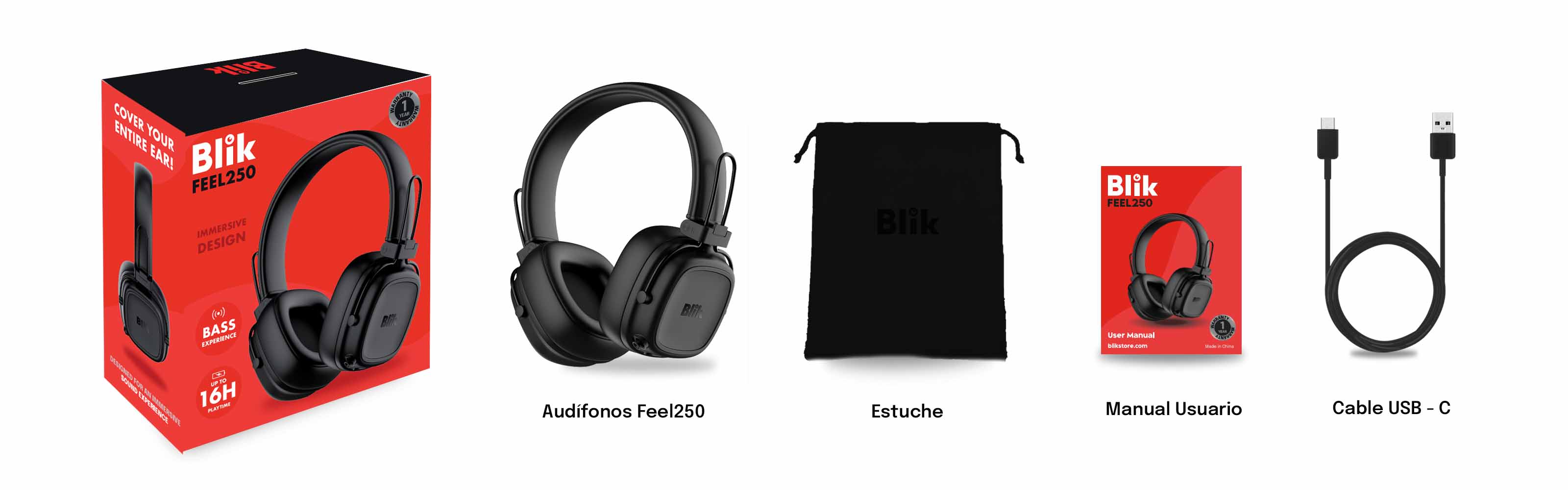 Audifonos Bluetooth Inalambricos Blik Feel250 Negros 16 Hrs