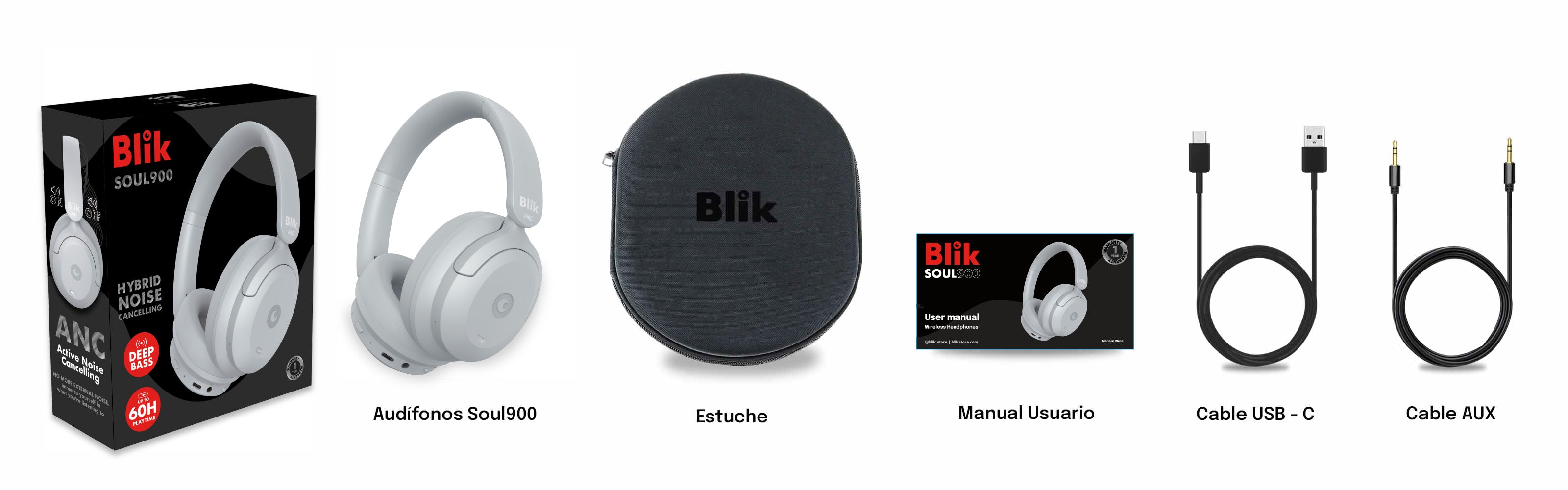 Audifonos Bluetooth Blik Soul900 Gris Cancelación De Ruido 60H