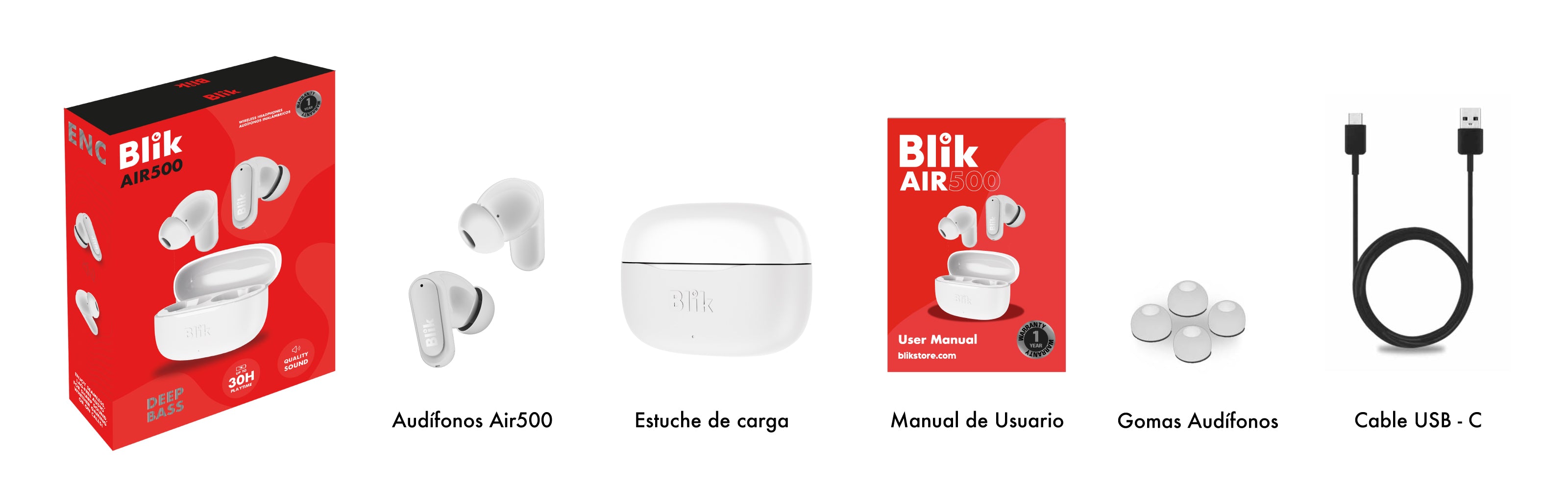 Con los audífonos inalámbricos Blik Air500 disfrutarás de tu música en todas partes, con un sonido de alta calidad y unos bajos profundos que te harán vibrar en cada nota. Con hasta 30 horas de batería, tendrás energía de sobra para escuchar tus playlists y series sin interrupciones; mientras que tus llamadas sonarán más claras que nunca gracias a la tecnología ENC que reduce el ruido mientras hablas. Su diseño ergonómico y ligero asegura comodidad durante todo el día, y su conexión estable te acompañará en cualquier momento, ya sea trabajando, entrenando o descansando.