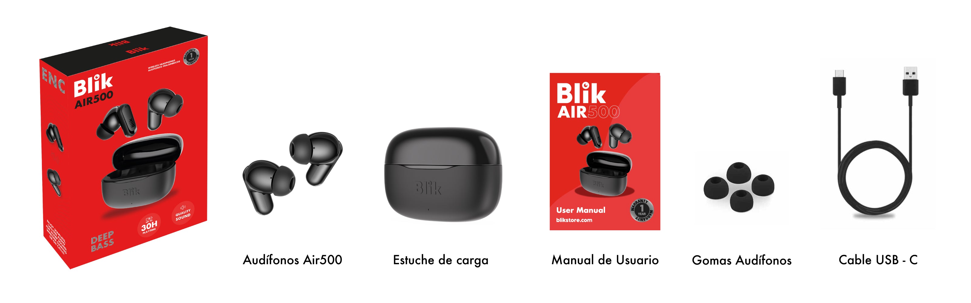 Con los audífonos inalámbricos Blik Air500 disfrutarás de tu música en todas partes, con un sonido de alta calidad y unos bajos profundos que te harán vibrar en cada nota. Con hasta 30 horas de batería, tendrás energía de sobra para escuchar tus playlists y series sin interrupciones; mientras que tus llamadas sonarán más claras que nunca gracias a la tecnología ENC que reduce el ruido mientras hablas. Su diseño ergonómico y ligero asegura comodidad durante todo el día, y su conexión estable te acompañará en cualquier momento, ya sea trabajando, entrenando o descansando.