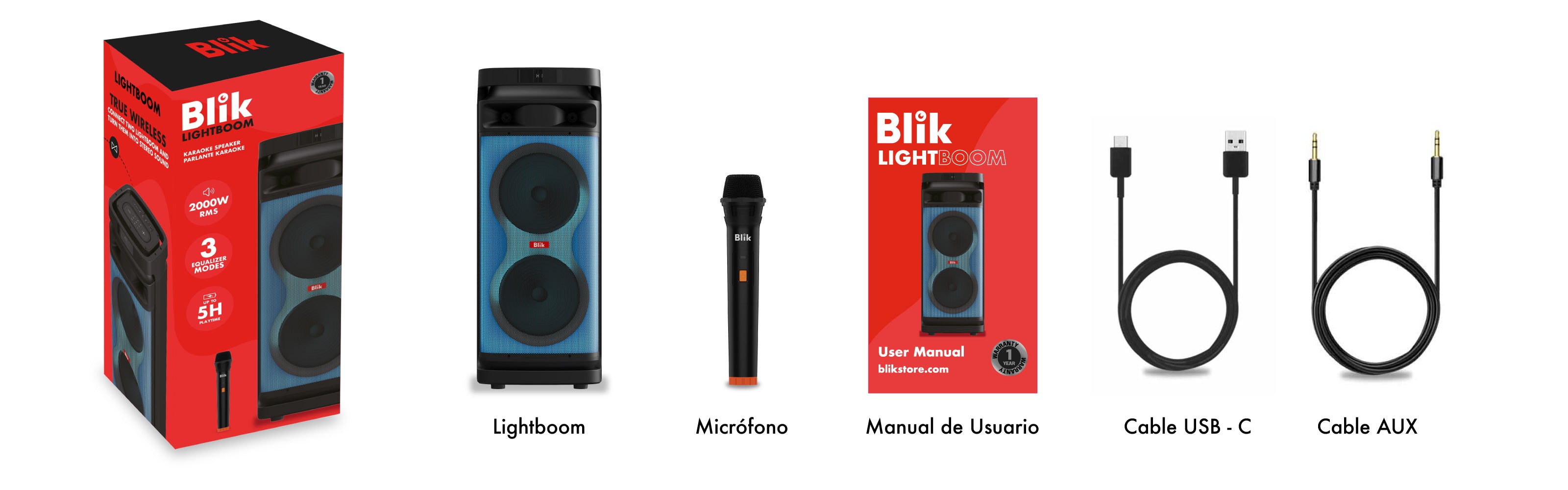 No es solo música, es espectáculo. El parlante karaoke Blik LightBoom enciende la fiesta con 2.000W PMPO y un sonido que se siente en cada nota. Con dos entradas de micrófono, una de guitarra y función de grabación, te invita a protagonizar cada momento y revivirlo cuando quieras. Incluye un micrófono inalámbrico, ideal para disfrutar de toda la libertad mientras cantas o animas el ambiente. Sus luces RGB marcan el ritmo, mientras sus tres modos de ecualización ajustan el sonido a tu estilo. Con hasta 5 horas de batería, la energía y la diversión no se detienen: el show siempre está listo para comenzar.
