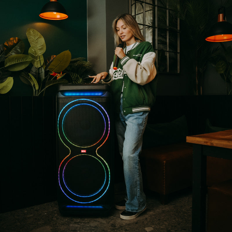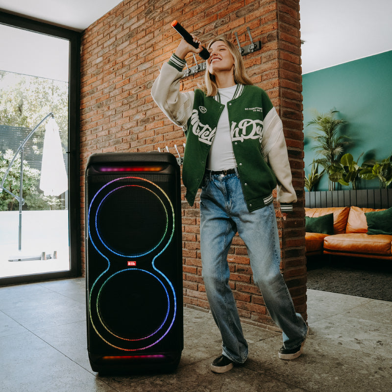 El parlante karaoke Blik UltraBass15 es potencia total en un solo equipo. Con 40.000W PMPO, ofrece un sonido profundo, claro y vibrante que transforma cualquier evento en una experiencia inolvidable. Su ecualizador integrado permite ajustar el audio a tu gusto, mientras las luces RGB crean un ambiente lleno de energía. Incluye dos entradas de micrófono, función de grabación y múltiples modos de reproducción. Además, incorpora un micrófono inalámbrico para que tomes el control, animes el ambiente y vivas la música con total libertad. ¡El UltraBass15 combina fuerza, color y tecnología para llevar el sonido a otro nivel!