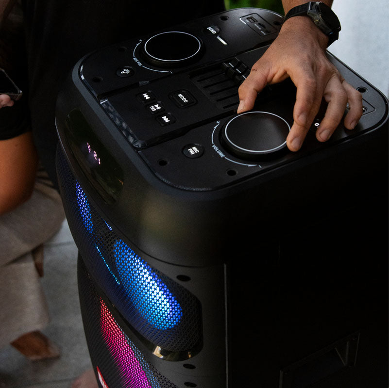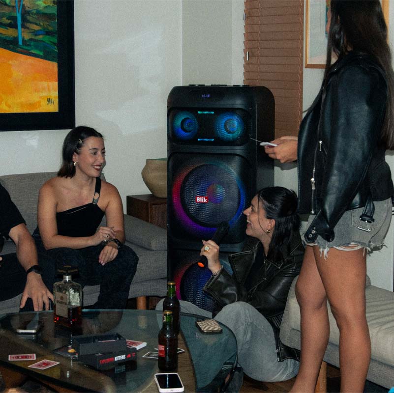 Con el Blik LightUp700 tus fiestas pasarán a otro nivel. Sube el volumen al máximo y disfruta tus canciones favoritas sin chicharreos molestos y con una nitidez increíble. Podrás escuchar la radio, ponerle color al ambiente con luces disco y cantar karaoke con su micrófono inalámbrico hasta que amanezca. Juégatela con uno y sorpréndete con la calidad de sonido a precios justos de Blik!