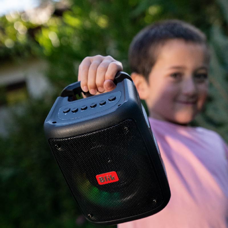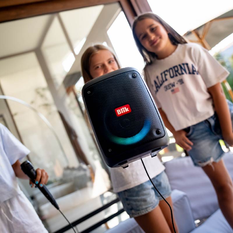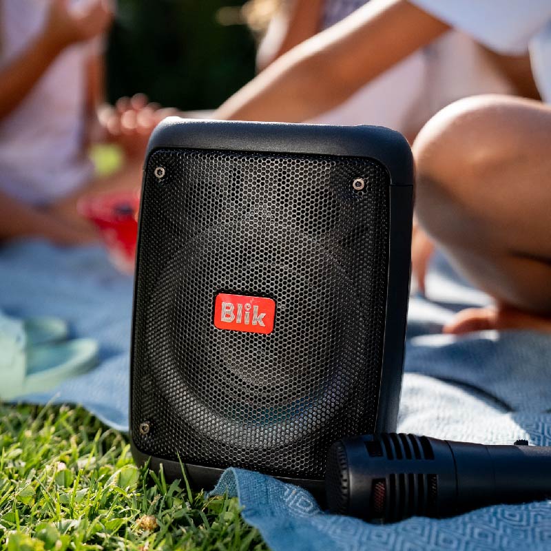 ¿Y si llevamos el karaoke a todas partes El Blik Voice es ese compañero perfecto para todas tus fiestas: cuenta con 10W RMS de potencia, un sonido nítido sin distorsión para que escuches al máximo volumen y un tamaño ultra portátil y compacto que te hará todo más fácil. Además, sus luces RGB y el micrófono incluido te garantizarán buen ambiente y entretención toda la noche. También podrás disponer de su tecnología TWS que te permitirá conectarlo a otro parlante igual y disfrutar de un sonido estéreo impresionante. ¡Saca a tu cantante interior y lúcete con el Voice!