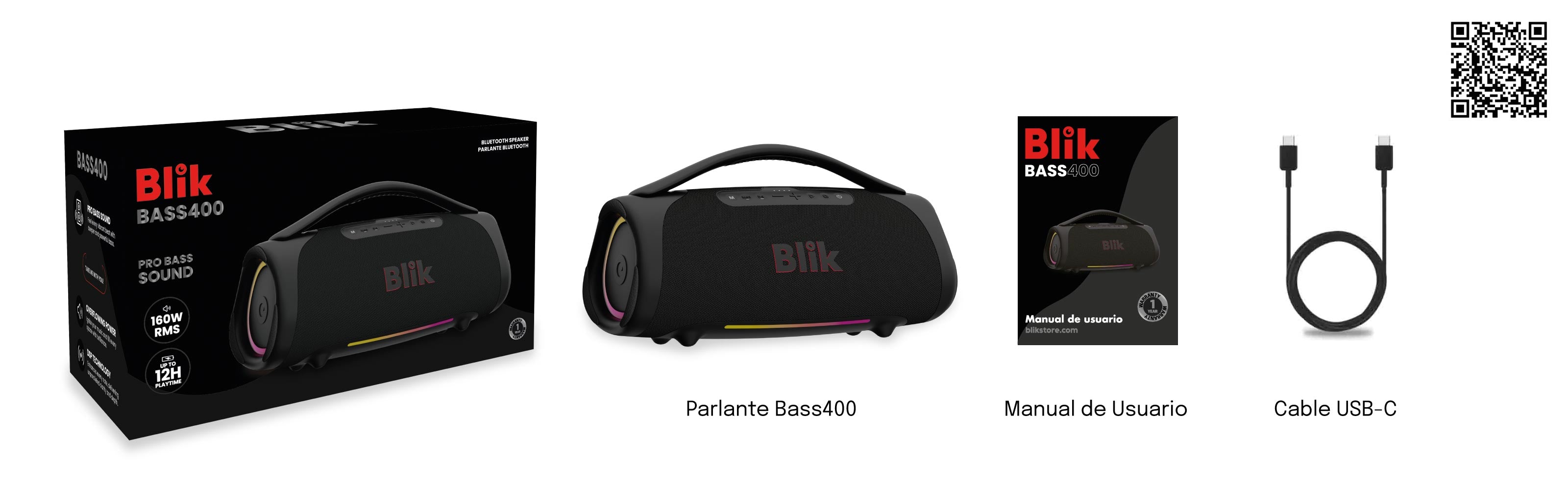 Parlante Bluetooth Portátil Blik Bass400 160W IPX7 12 Hrs